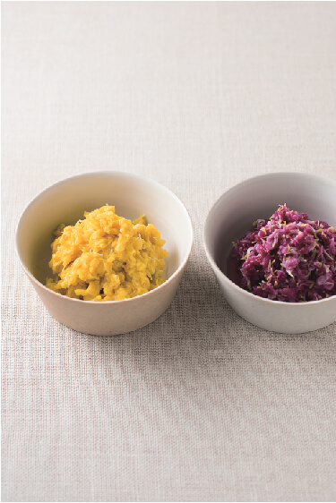 - 熱湯に酢少々を加え、花びらを入れて箸で抑えながら、透明になるまでゆでる。ざるにとり、冷水で洗って水けを絞る。