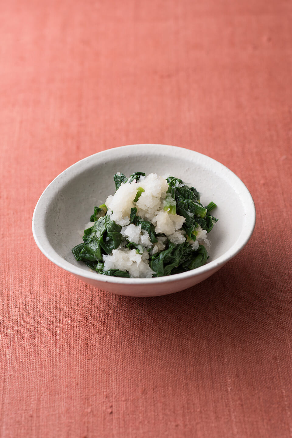 - 大根おろしは軽く水けをきり、ほうれん草とあえる。