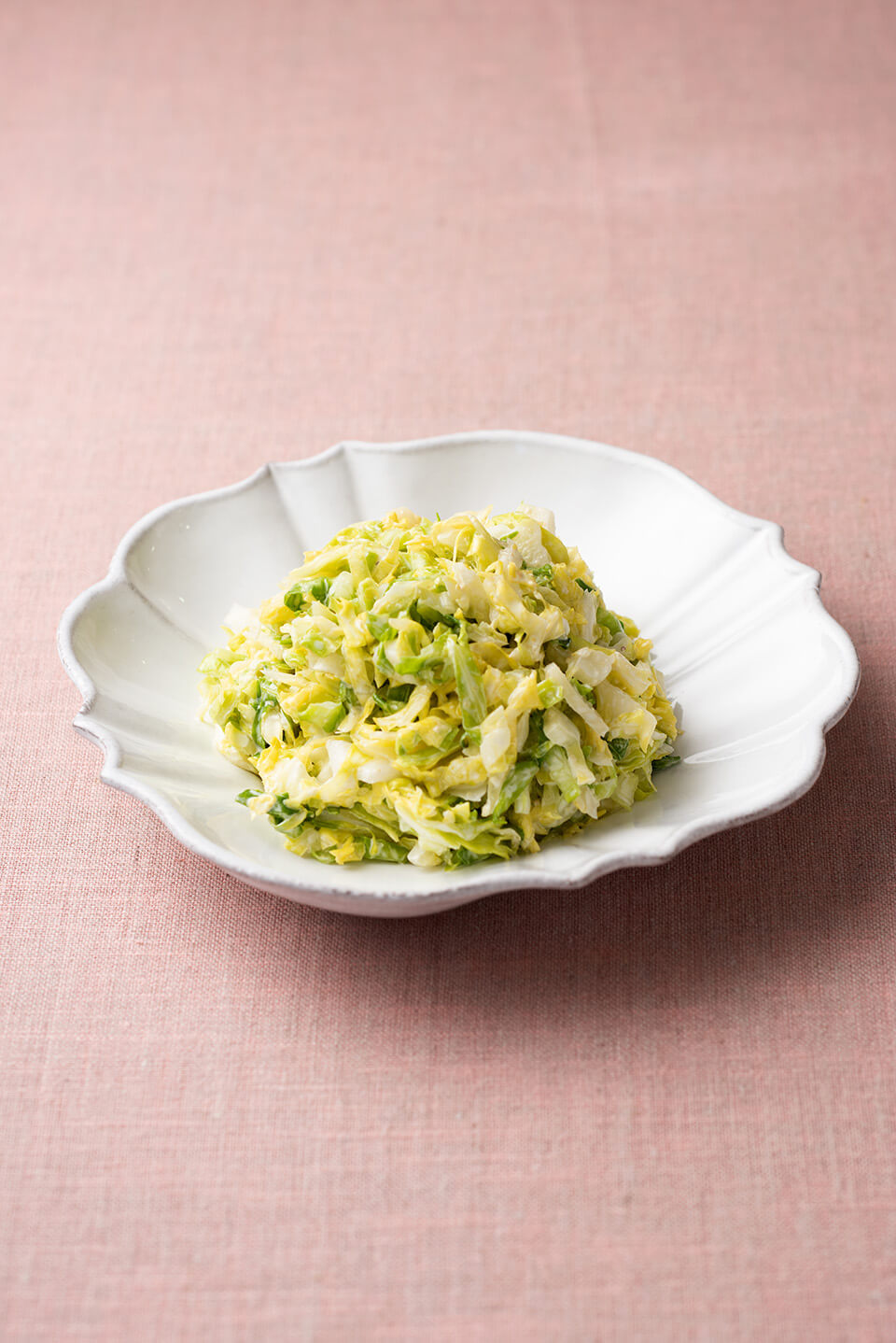 - ボウルに入れて塩を加え、はじめは軽く、だんだん強くもむようにして水けを絞る。