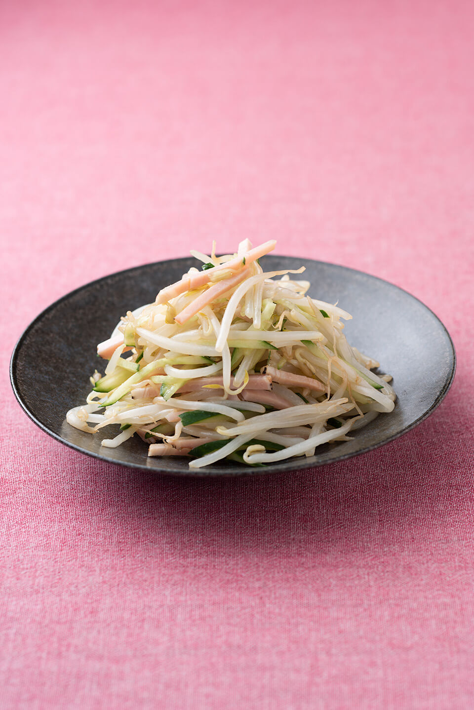 - ボウルにたれの材料を合わせ、もやし。きゅうり、ハムをあえる。