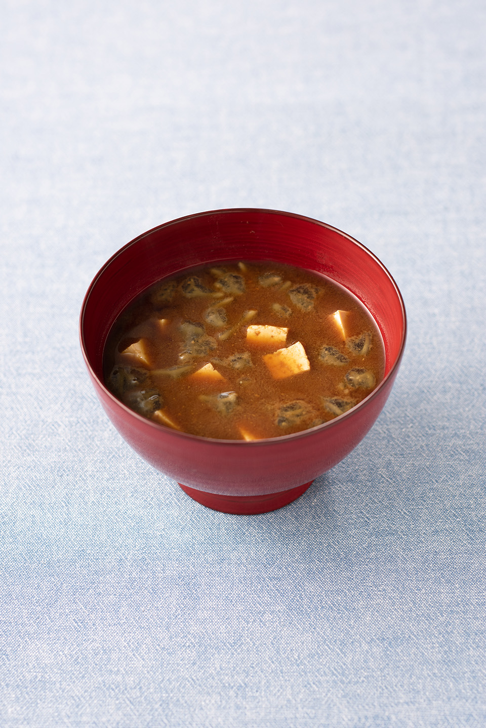 2. だし汁に味噌を溶き入れる。豆腐、じゅん菜を加え、温める。お椀に盛りつける。