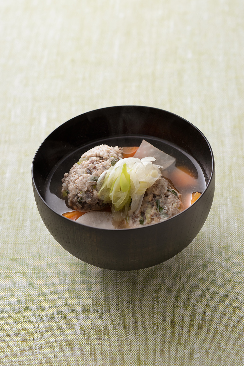 - 鍋に水6カップと昆布を入れて中火にかけ、煮立ったら、つみれのたねを一口大の団子状にして、スプーンで落とし入れる。大根、にんじんを加えて弱めの中火にし、アクを取りながら、大根が透き通るまで煮る。しょうゆ少々で調味し、器に盛って、長ねぎの斜め切りをあしらう。好みで粉ざんしょうをふる。